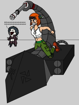 However, I think the main difference is that you're viewing this more grimly than I am. In my mind, since Advance Wars is quite cartoony and happy, Sami will be saved in the end and Lash will go back to her lair to plot something else, and everything will turn out alright. Then again, if the picture looks grim, than that is my fault. I tried to give it a more happy feeling with the chibi/hysterics Lash in the corner.