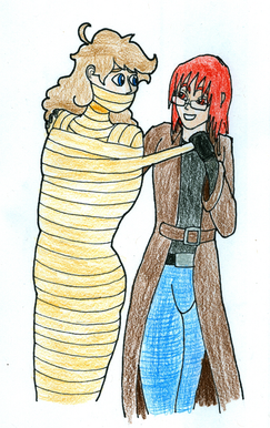 aww how mean now we cant see her lovely eyes (pulls back some of the bandages around her eyes then quickly moves them back) I take that back her eyes just now were not very lovely boy if looks could kill, very nice edit on this one all the edits look great so I will fav them all