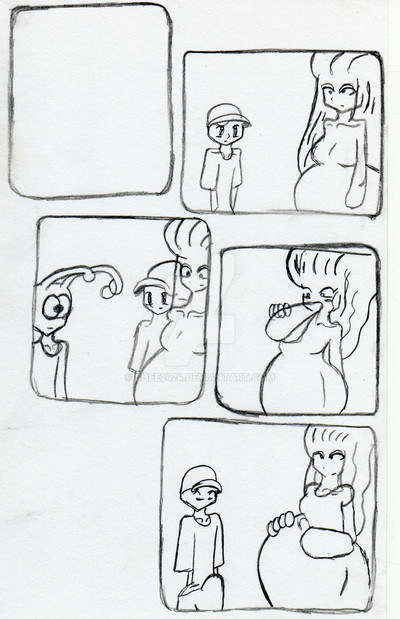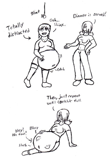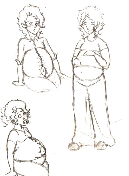 A cute girl, massively stuffed with all sorts of Halloween goodies. She should have quite a bit of fat as well as a bulging belly - and decent boobs and butt.