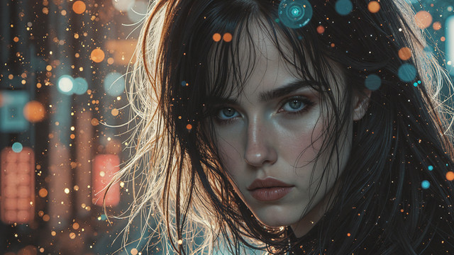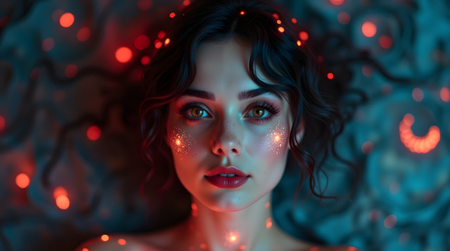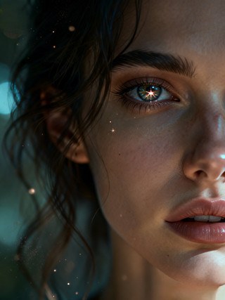 #digitalart #portrait #beauty #atmospheric #cinematic #curls #emotion #freckles #glow #intensity #intimate #light #night #serene #shimmer #spark #detail