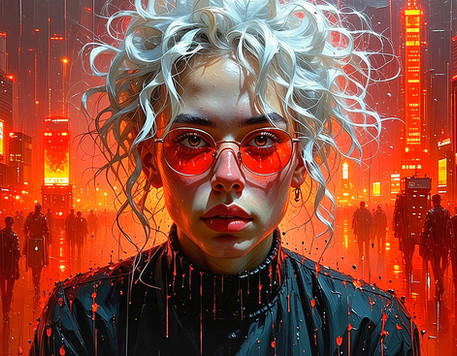 #digitalart #characterdesign #cyberpunk #portrait #contrast #cyber #dark #face #futuristic #glasses #glow #light #mood #orange #technology