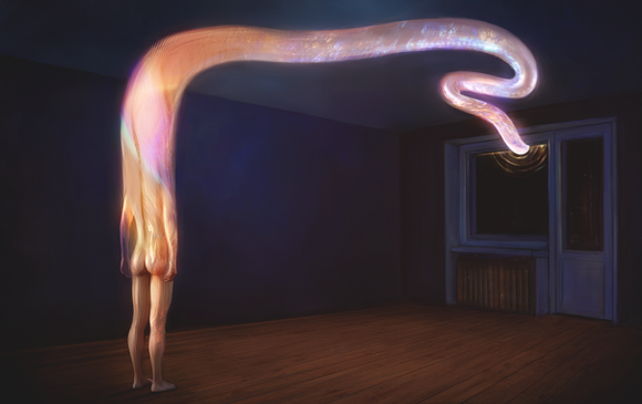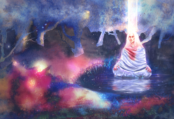 The splash resembles a pearl oyster. Its very gentle painting.