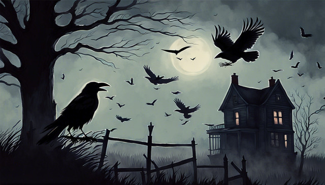 #ai #dreamup #birds #crow #landscapescenery #nightscapes #ominous #paintings #rococo #rococostyle #rococopainting #creepyvibes #ai_art