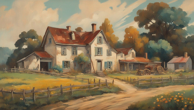 #architecture #ai #dreamup #vintage #digitalart #portrait #impressionism #landscapepainting #digitalpainting #forest #farmhouse #farming #farms #painting #ai_art
