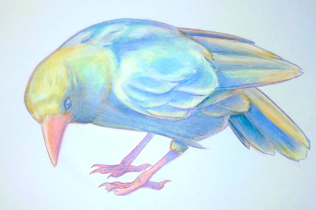 It's nice to see a crow surrounded by colour. Usually people draw them in such dark surroundings