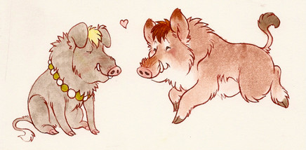 beautiful illustrations and sweet characters! Gotta love boars I especially like the grumpy red one and the posing grey boar. Fav!