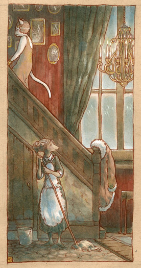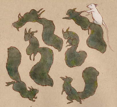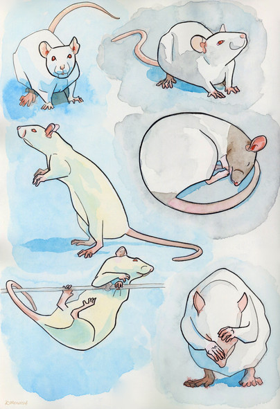 The simplicity and balance of this piece makes it such a pleasant thing to look at. Adorable rats, too. It almost makes me think of Flowers For Algernon (--although Algernon was a mouse.)