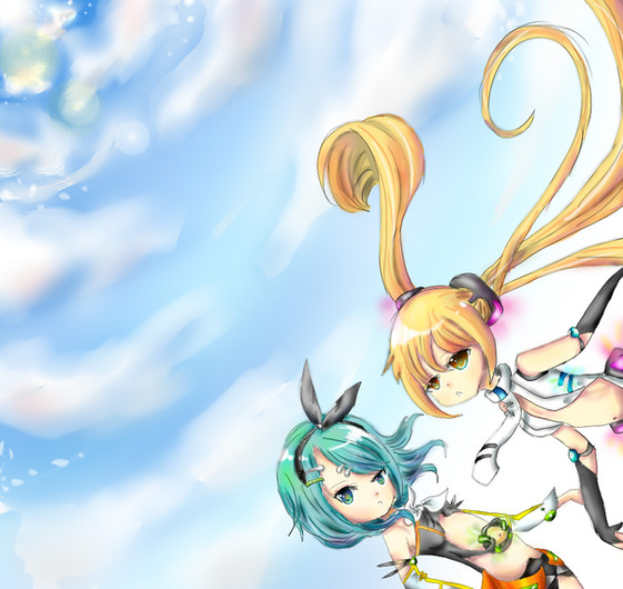 This is a fanart of Miku and Rin. I drew this on Corel Painter 4.