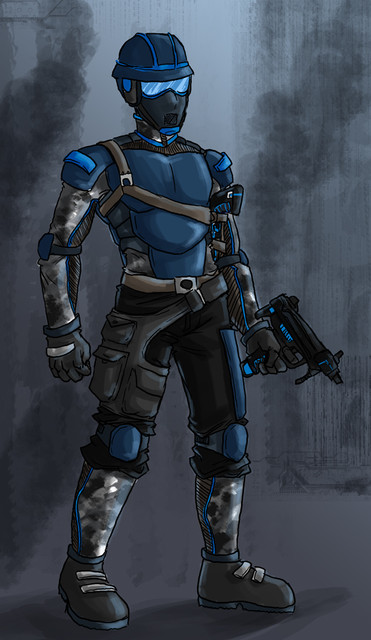 Yeah, it's about time I'd draw me one of these guys. Been working on this huge-ass army for months, now, and never managed to draw something properly. One half-assed lineart of their Mechas showed up, for, like, half a day, before I deleted it, because it was already outdated.These are basically the standard infantry units. They fight. They talk. They... I dunno, drink coffee?