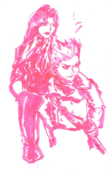 Ah, I did this after reading a few private messages in a forum whilst overcome with that sappy nostalgic mood. Just to pull myself out of that yucky state, I created this visual mindfuck.Features Inoue and Tatsuki from BLEACH.