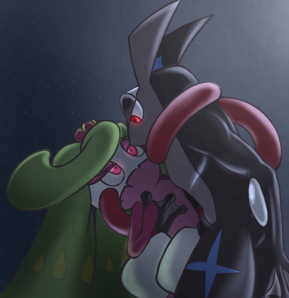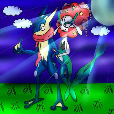 Wow cuanto tiempo llevo de dibujar un fondo de bosque o shipear algo.Si bien esto puede interpretarse lindo,pero realmente los dos están algo incómodos por diferentes maneras Gardevoir no deja de tocar la lengua de Greninja , ya que es como si estuviese lamiendo la mano, y ustedes saben que las manos no saben realmente bien al menos mi opinión.