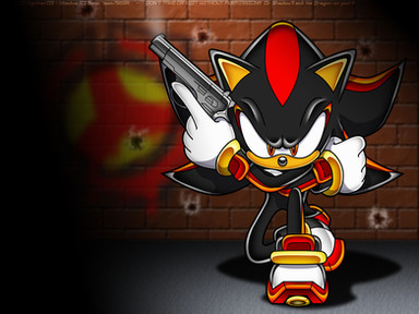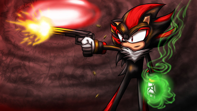 Since blue is the color of virtue and righteousness in the Sonic universe, I would have inverted the colors so red is on the side with the gun, and blue is on the side with the emerald. That is, if the point of this pic was to remind us of the Shadow game and his conflict to choose sides.