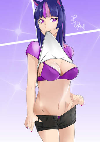 Twilight: *Giggles and teases me a little* Like what you see my handsome hunkasaurus?~ā„ *Takes off her bra*