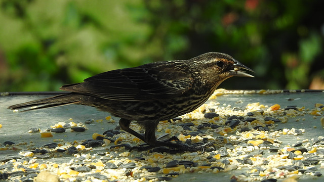 Ours are spoiled rotten, the feeder is just a few feet away from the bush, bird bath nearby too. Yup, I spoil the birds, they're well fed. Maybe I'll claim to do it to fatten them up for the redtail I've spotted hunting my yard, le'faint!