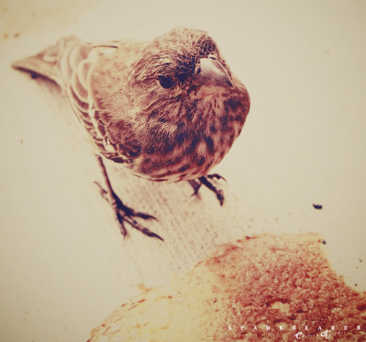 I swear dA is eating my words! Ah well. Yes, the bird is pretty, just like his/her twenty jillion friends who are all living in the bush by my deck! Le'faint!