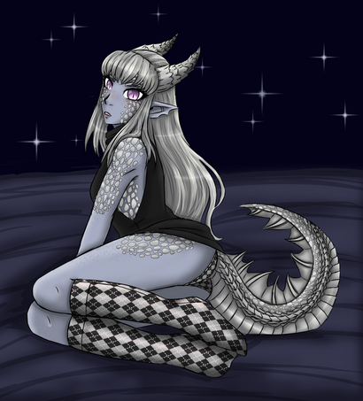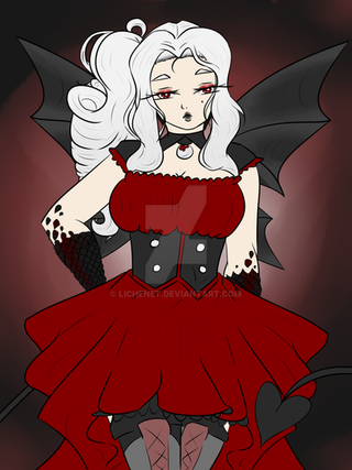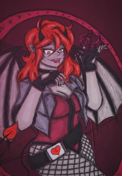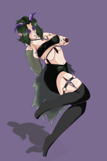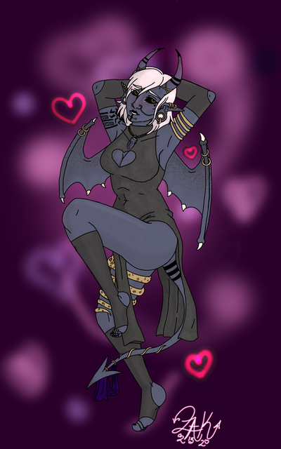 what started as a sketch turned into me messing around with brushes and shadingMy succubus bard, Valastra Liarie.