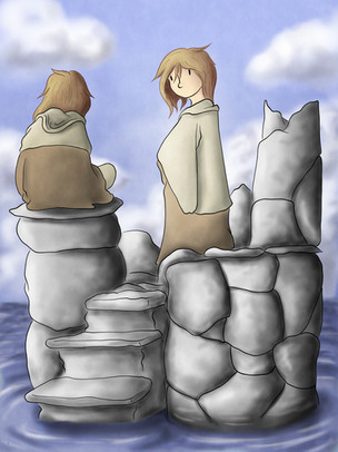 Aww its such a pretty scene I love how you have made the rocks all pile up it looks so like how you would imagine it to be in your mind. If that makes sense