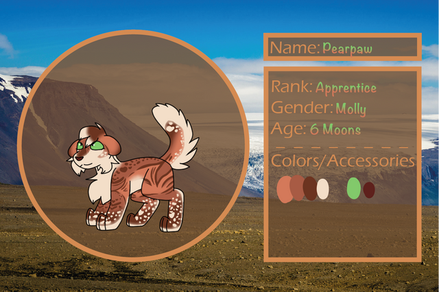 Willowshade and Clayface had lost their first two kits prematurely, and were afraid of not having any living kits until Owlgaze told them they were to have a third kit. This kit was born being very healthy and was named Sprucekit.