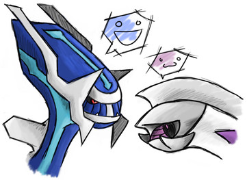 really cool Dialga and Palkia, mine's names are Galaxia (Palkia) and Ticktock (Dialga). ans like you, I consider my Palkia to be female and my Dialga a male