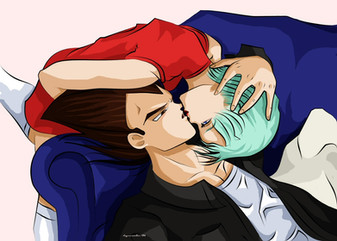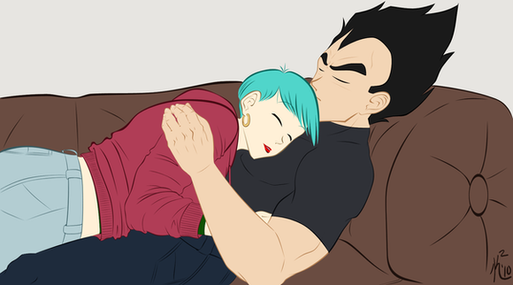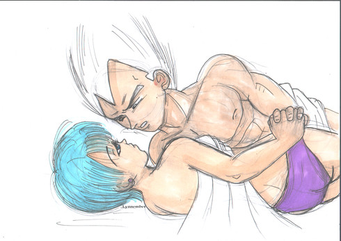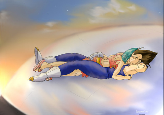 I'm pleased with how Vegeta turned out in this... hmm... not so sure about Bulma though... oh well.Sketched in pencil and then coloured in photoshop 7.