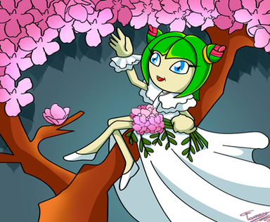 vilken söt! jag gillar färgläggningen, och trädkronan i bakgrunden ser väldigt vacker ut. ^^ bra jobbat!