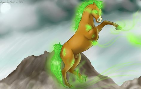 Amazon is a young-hearted, giving, selfless stallion. His heart would be made of pure gold if it wasn't beating, he is at one with the space around him and his motto revolves around peace and faith. He can be stubborn to believe any horse has bad in them, and just wants to be friends. However this sometimes leads him into giving second chances which turn out to be broken. He is forgiving. His has manipulation over all trees and any other thing earth grown. Though only uses it when he needs too, his role as a Guardian is solely to protect the mortals.