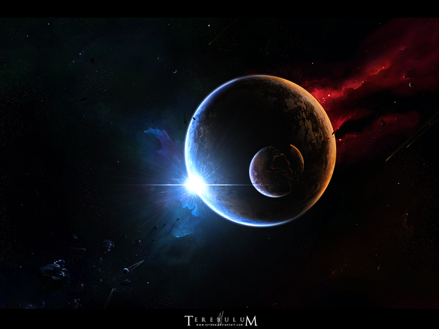 Very cool, it seems to have this strange mood about it which amkes me feel as if this is taking place at the very edge of the Universe (or at least the galaxy) must be the colours and lighting I like the texture on the biggest planet (excluding the main one wer'e orbiting above that is) where's the terragen part