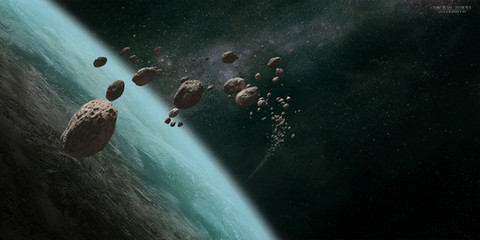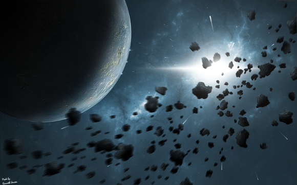 Very dramatic lighting and colour, and that glowing edge around the broken crusts of the destroyed planet really top it off