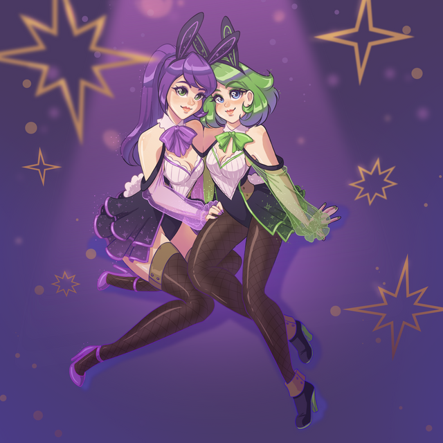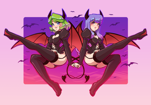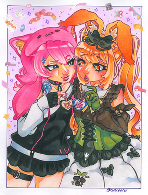 Two cute night creatures having fun at the graveyard in this spooky night.Art trade with IG/liry_pon and her OCs, Haru and Juno, looking as cute as always together.