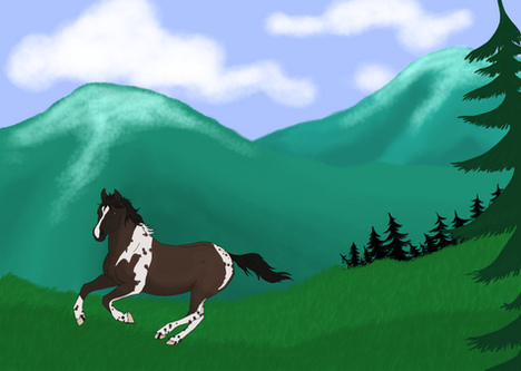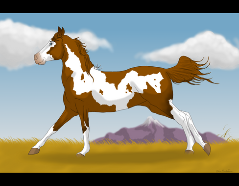 Ooooo--so pretty! What a gorgeous mare! Her pose is lovely, and that background is fantastic! I extra-love the wave you drew her sweeping mane. You need to share your awesome painting skills with us sometime!