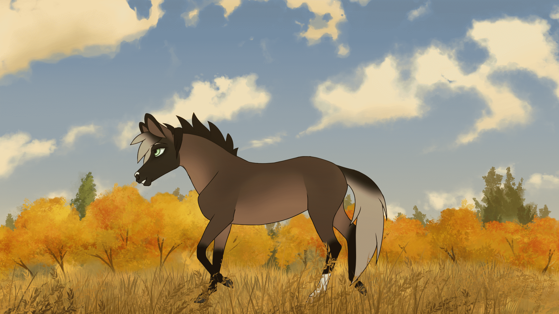 I really like how the background colors contrast with the character; it adds a lot of life The pose is really good and I love the way you did the mane and tail