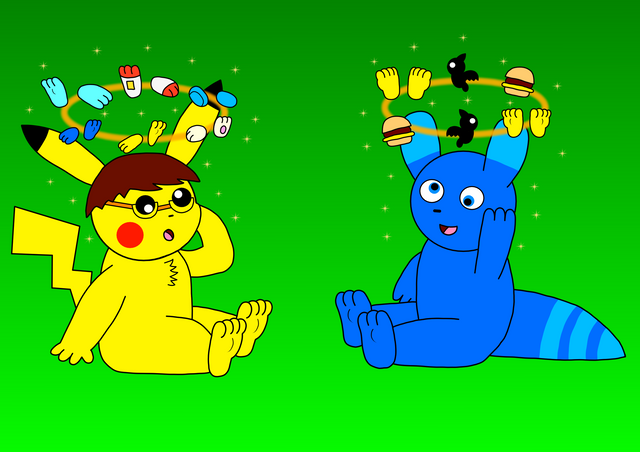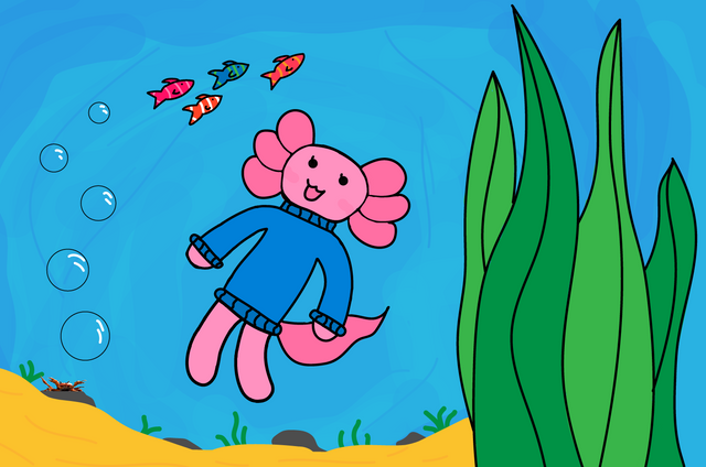 Poco swam a little too fast in circles and circles to the point that swimming made him dizzy. Now he sees fruit-colored axolotls and real fruits circling around his head.