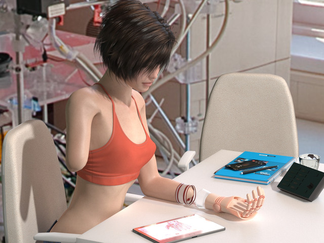 superb picture, the character never lets their disability stand in the way of their normal routines.