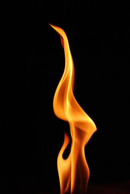 I see.... a gargoyle. Hunched over with his wings erect. These fire photos are simply amazing!!