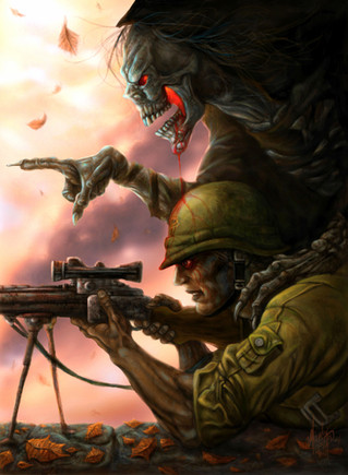 I'm not good with guns. Looks like they are using RPK's?? (elements of AK's) which I guess would mean they aren't all Nazi's or German as I first thought... Aaand I suppose the crazy scythe thing wasn't standard issue for anybody!