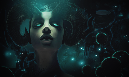 #devil #blue #eyes #light #mask #red #smudge #woman #yellow #maagg