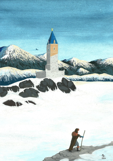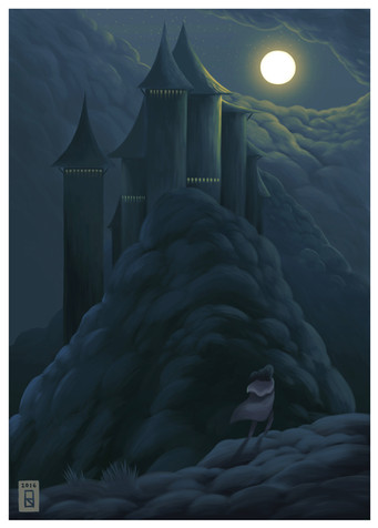 The place, a castle or a city, looks reassuring, like a possible shelter.