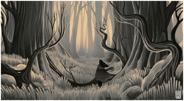 I notice you're starting to add more color variation to your paintings, and the result is gorgeous! Really love the lighting in this one, it's like stepping out of a dark forest and into the light. Very nice job!