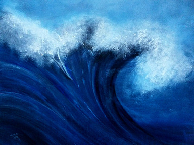 This is an absolutely gorgeous piece of art so great job! Before I clicked on the art to see a bigger copy, I actually thought it was a photograph of a real wave. I love the blending of the blues as well as the different coloration of blues you chose to use. The white on the top of the wave looks exactly like the mist you would see on a real one.