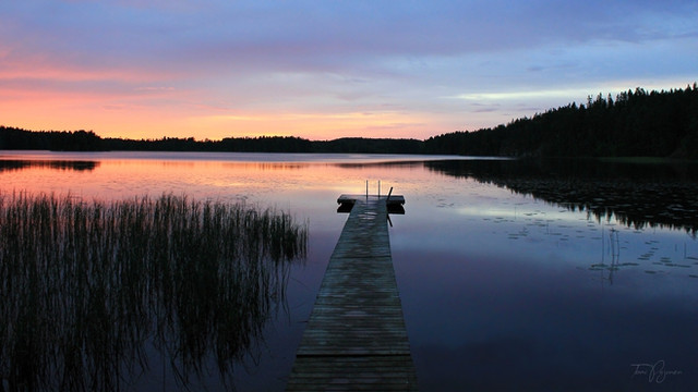 #clouds #dock #finland #forest #lake #landscape #nature #reflection #sky #summer #sunset #trees #water
