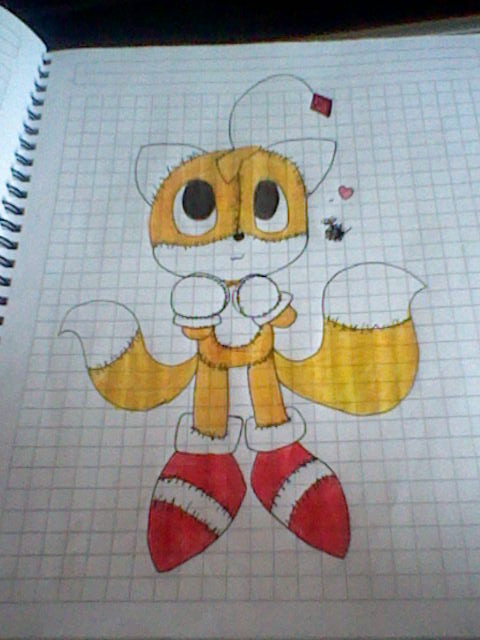 Tails is holding a heart.Tails esta sujetando un corazon, lo hice hoy