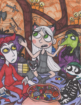 drawing Emily, I used the silver metallic Sharpie marker to give the ghost-like feel to her.