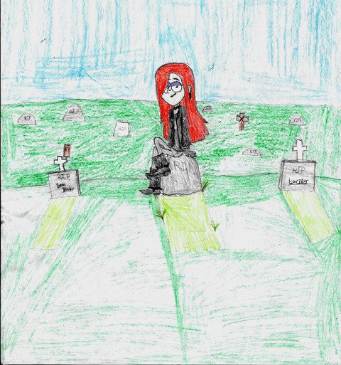 Based on the graphic novel "Anya's Ghost" by Vera Brosgol.Anya meets Emily for the first time. I decided to color Anya's outfit. Also, when I was