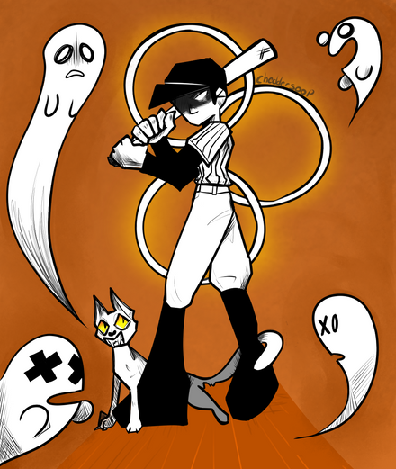 #baseball #bat #batter #cat #creepy #game #ghost #judge #macaroni #orange #rpg #rpgmaker #surreal #uniform #white #macaro #off #fanartdigital #videogamefanart #mortisghost #mortisghostoff #off_game_fanart