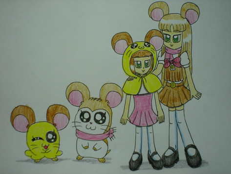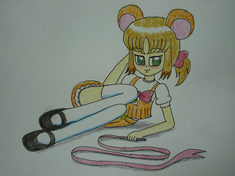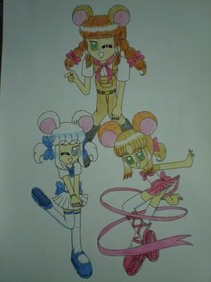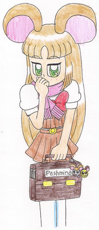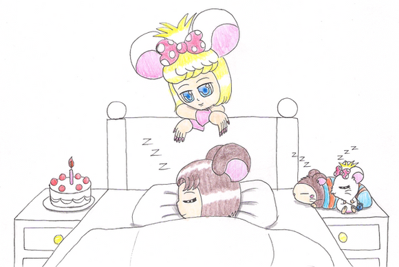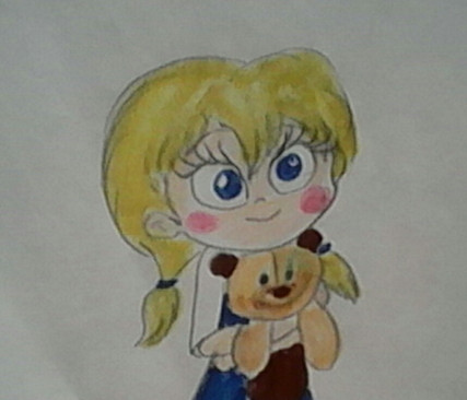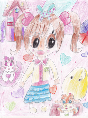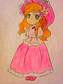 I draw that when I saw my friend in China draw this character. She holding a puppy doll Cookie.Cookie by Disneyland