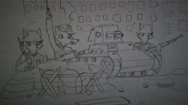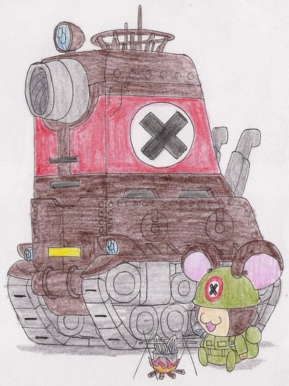 An enemy shoot a gun, throw firebomb and grenade. A tank to protect the ham-ham soldier.Hamtaro by R.Kawai
