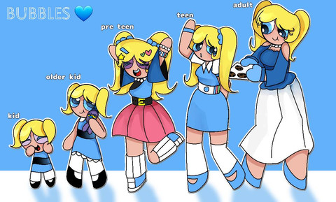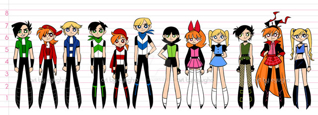 Bubbles is nearly the same height as Blossom and Buttercup. Same goes for Boomer who is the same height as Brick and Butch.Β