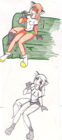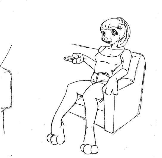 A request for ~Slaskix . I believe she wanted me to draw her character Andy, in this position, playing videogames on a couch. I hope it turned out alright...I'll redo it if you want me to. I shouldn't have outlined it...