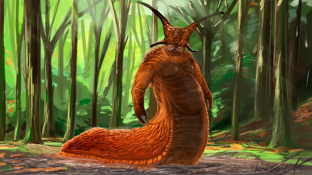Really cool drawing, I dont think Iv'e ever seen a snail anthro before. I also like how it looks like its about to strike.