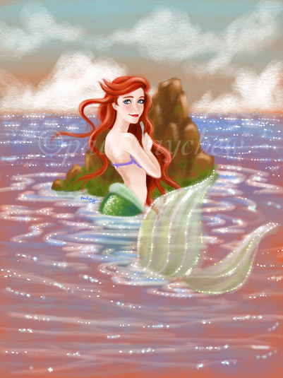 Thanks for the compliment on her hair, I've always loved Ariel's loooong hair and get annoyed when I see it animated as a big red pillow- she's in the ocean Disney! Make it flow!! (though the animation is actually really incredible^^ just thinking about how much work it must have taken to animate an entire movie underwater..yikes!)